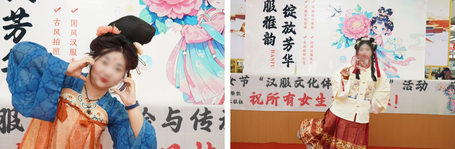 漢服社通過(guò)真實(shí)的漢服服裝展示,讓大家可以近距離感受漢服文化。